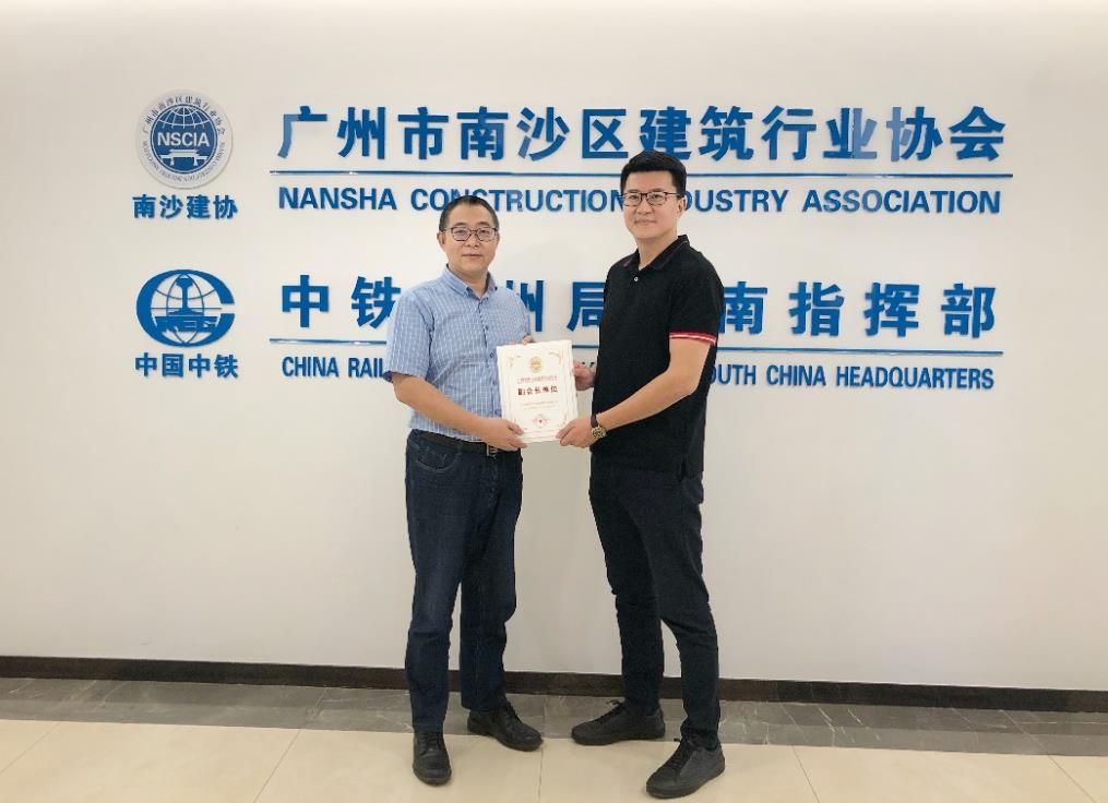徐秘書長為許總經(jīng)理頒發(fā)“廣州市南沙區(qū)建筑行業(yè)協(xié)會副會長單位”證書